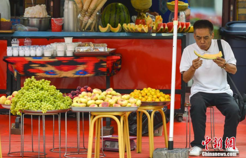 盛夏時(shí)節(jié),新疆又迎來一年瓜果飄香時(shí),游客隨時(shí)隨地都可品嘗到最美味的瓜果。劉新 攝