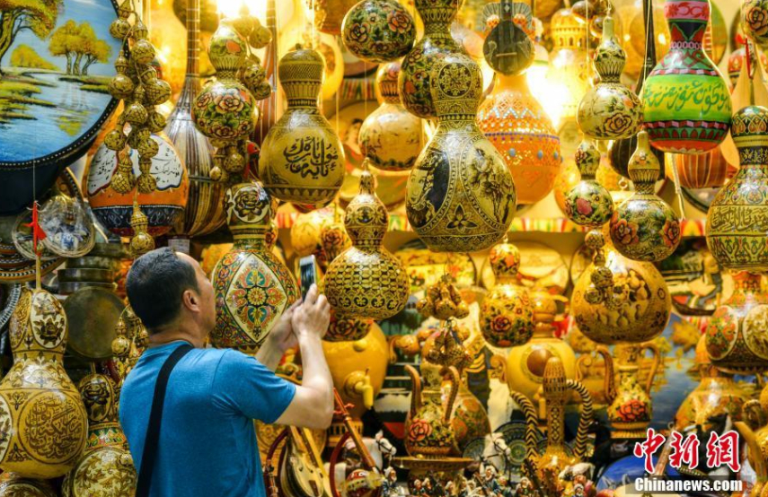 新疆國際大巴扎,游客被頗具特色的手繪葫蘆所吸引。劉新 攝