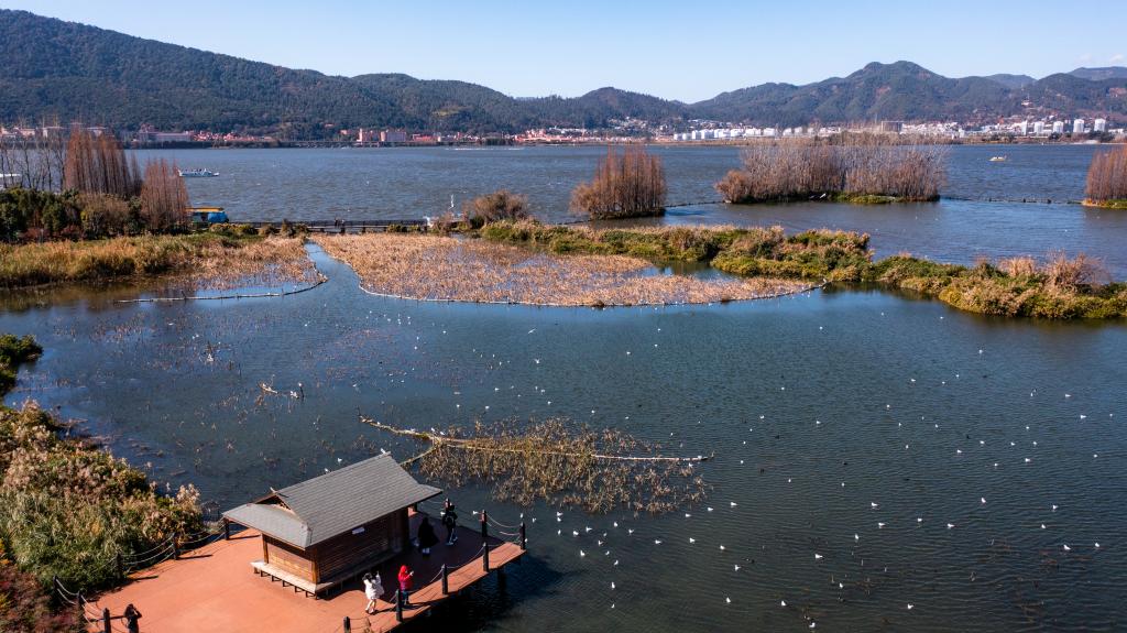 湖面碧波蕩漾,天空白云朵朵,紅嘴鷗振翅翩飛……“高原明珠”滇池正以生態(tài)和諧、生機(jī)盎然、鄉(xiāng)愁永駐的面貌呈現(xiàn)在世人面前。昆明市民感嘆道:滇池的水越來(lái)越清了,生態(tài)環(huán)境越來(lái)越好了。