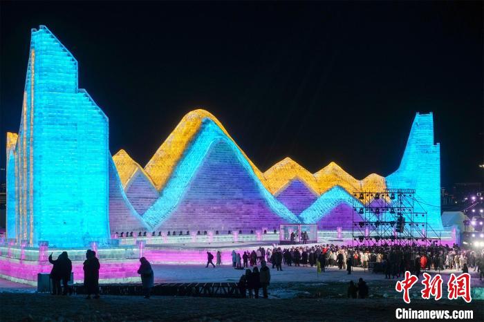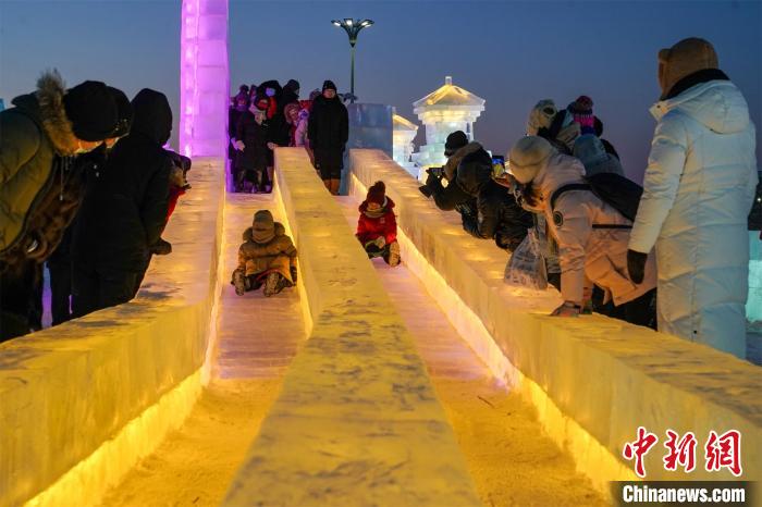 17日,第二十五屆哈爾濱冰雪大世界迎來首批游客 趙宇航 攝 相較于往屆,今冬的冰雪大世界景觀更美、亮點(diǎn)更多,打造“龍騰之韻”光影秀、“雪映流光”投影秀、冰鋼琴等七大景觀亮點(diǎn);滑雪體驗(yàn)區(qū)、雪花摩天輪、冰雪歡樂匯、冰雪汽車芭蕾秀等八大網(wǎng)紅爆點(diǎn)。
