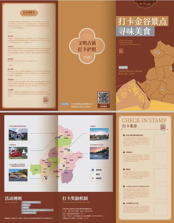據(jù)安溪縣金谷鎮(zhèn)人民政府副鎮(zhèn)長(zhǎng)張錦川介紹,為了吸引更多游客,金谷鎮(zhèn)黨委、政府推出一項(xiàng)“打卡金谷景點(diǎn)尋味美食”活動(dòng),在安南永德蘇維埃政府舊址、莫耶故居、威鎮(zhèn)廟、中共安溪中心縣委軍政干部訓(xùn)練班舊址紀(jì)念館、金谷溪岸藝術(shù)公園等5個(gè)景點(diǎn)設(shè)置蓋章點(diǎn),游客任選其中4個(gè)景點(diǎn)完成打卡,即可領(lǐng)取一份“四物番鴨湯”。通過(guò)打卡的形式,鼓勵(lì)在不同景區(qū)完成打卡任務(wù),增加游客的參與度和體驗(yàn)度。