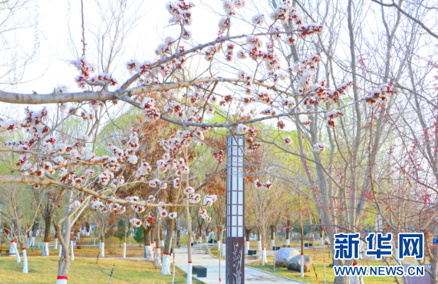 連日來,隨著天氣回暖,新疆巴音郭楞蒙古自治州博湖縣博湖鎮(zhèn)百信休閑公園的杏花進入盛花期,一團團、一簇簇的花朵將城鎮(zhèn)裝扮成花的海洋,吸引了眾多游客前來觀賞。(王陸斌)