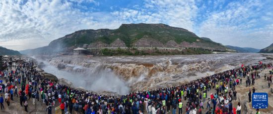 國(guó)慶長(zhǎng)假期間,位于山西省吉縣和陜西省宜川縣交界處的黃河壺口瀑布迎來(lái)眾多游客,觀賞“黃河之水天上來(lái)”的壯觀景象。