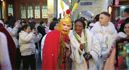 2024年12月4日,中國(guó)的傳統(tǒng)節(jié)日春節(jié)正式列入聯(lián)合國(guó)教科文組織《人類非物質(zhì)文化遺產(chǎn)代表作名錄》,標(biāo)志著春節(jié)這一中國(guó)文化瑰寶走向全球,成為全人類共同的文化遺產(chǎn)。本次活動(dòng)中,現(xiàn)場(chǎng)也多了許多身著中華傳統(tǒng)服飾的“洋面孔”。這些來(lái)自世界各地的外籍友人身著漢服,記錄在忻州古城的新奇體驗(yàn),從國(guó)際視角感受山西年俗文化的獨(dú)特魅力,進(jìn)一步推動(dòng)了“歡樂(lè)中國(guó)年地道山西味”這一山西文旅IP品牌國(guó)際化傳播。