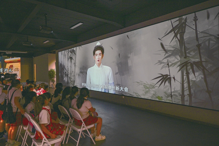王維“數(shù)字人”正在與研學的小朋友進行互動。吳遵民攝