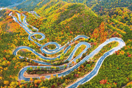 10月17日拍攝的左權(quán)縣太行龍泉風(fēng)景區(qū)景色。太行一號(hào)旅游公路北天池段,似長龍盤旋在五彩斑斕的太行秋色之中,峰回路轉(zhuǎn),風(fēng)景秀麗,繪成一幅絕美的天然畫卷,帶領(lǐng)游客開啟詩意之旅。