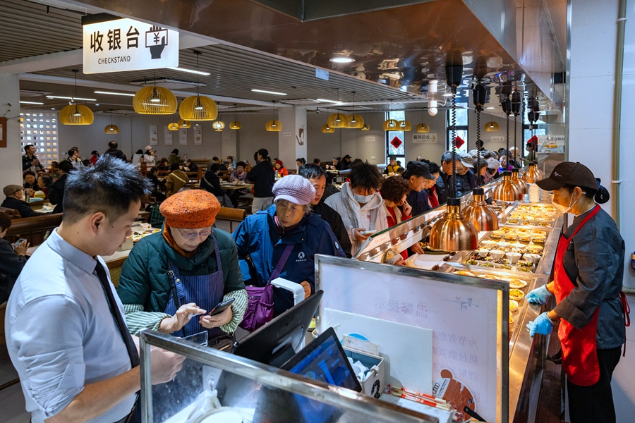 2025年11月18日,游客們?cè)谒拇ú┪镌菏程脙?nèi)排隊(duì)選菜。新華網(wǎng) 張可凡 攝