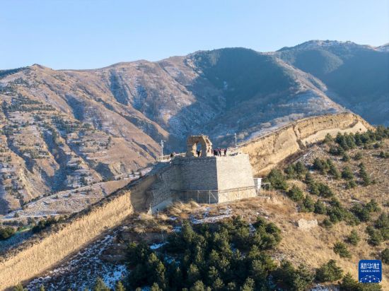 游客參觀位于朔州市山陰縣的廣武長城(無人機照片,1月6日攝)。