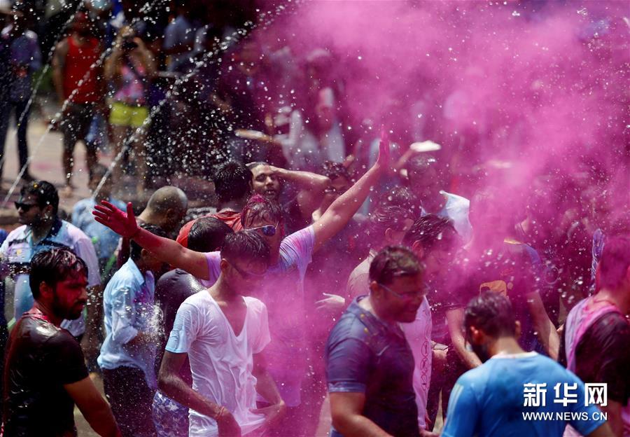胡里節(jié)也叫“灑紅節(jié)”,人們在自己臉上和身上涂上顏料,還向別人拋撒五顏六色的顏料和粉末,迎接春天的到來。新華社發(fā)(吳昂 攝)