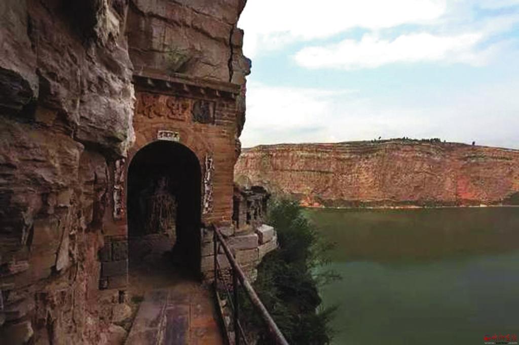 沿著石壁繼續(xù)下行十多米,眼前出現(xiàn)一條羊腸小道,小道中途還有座獨木橋,橋的一端建有石門,門上刻“懸空界”三字,穿過石門便是聞名天下的彌佛洞。彌佛洞建在黃河峽谷絕壁上的一個天然石窟之中,洞內怪石倒垂,犬牙交錯,人至其中如入虎口。從石洞后壁登23級石階,又有一石窟,高約兩丈,內供佛像一尊。彌佛洞憑借雄渾壯觀的自然景觀給人們留下深刻印象,中國當代著名畫家吳冠中先生觀后稱其為“黃河上的一大奇跡景觀”。