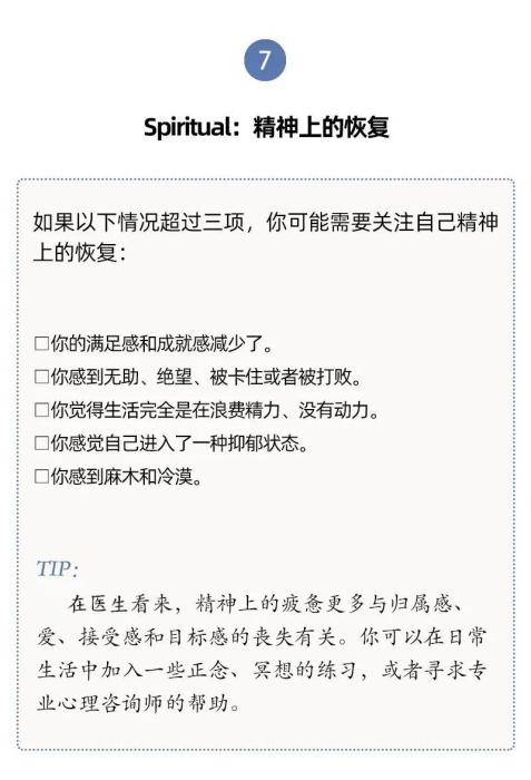 有內(nèi)科醫(yī)生根據(jù)研究和臨床經(jīng)驗(yàn),提出了7種類型的休息方式,幫助我們確定最需要哪一種。