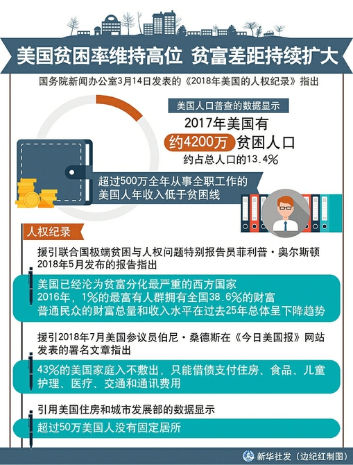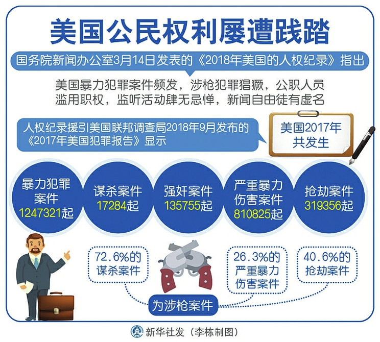 國(guó)務(wù)院新聞辦公室14日發(fā)表《2018年美國(guó)的人權(quán)紀(jì)錄》《2018年美國(guó)侵犯人權(quán)事記》,對(duì)美國(guó)侵犯人權(quán)的狀況進(jìn)行揭露。