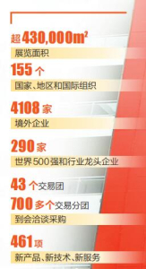 展覽面積超過43萬平方米,155個(gè)國家、地區(qū)和國際組織參與,4108家境外企業(yè)參展,290家世界500強(qiáng)和行業(yè)龍頭企業(yè)參展……在八方來客眼中,進(jìn)博會(huì)越長越“高”、越來越“壯”。