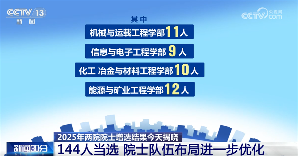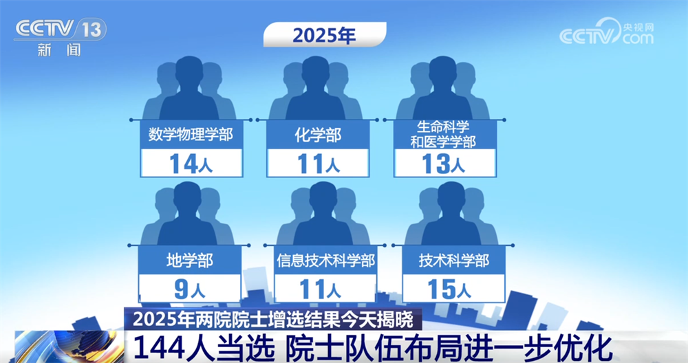 央視網(wǎng)消息:11月21日,2025年兩院院士增選結(jié)果正式揭曉,共有144人當(dāng)選,院士隊伍的年齡結(jié)構(gòu)、學(xué)科、地區(qū)和行業(yè)布局進(jìn)一步優(yōu)化。