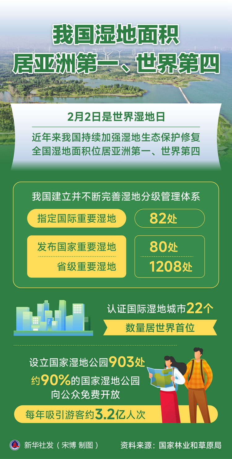 新華社北京2月2日電(記者黃垚)2月2日是世界濕地日。記者當(dāng)天從國家林業(yè)和草原局獲悉,近年來我國持續(xù)加強濕地生態(tài)保護修復(fù),全國濕地面積位居亞洲第一、世界第四,濕地保護形成重點治理和分類保護相結(jié)合的新格局。