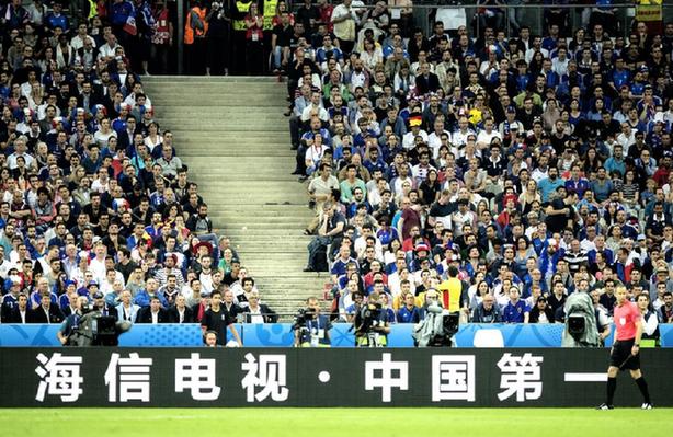 “海信電視,中國(guó)第一”!2016年6月10日,法國(guó)巴黎圣丹尼斯球場(chǎng),隨著歐洲杯揭幕戰(zhàn)打響,中國(guó)品牌海信的廣告出現(xiàn)在全球球迷面前。這是歐洲杯56年來(lái)第一次迎來(lái)中國(guó)贊助商,海信的廣告也在未來(lái)1個(gè)月內(nèi)出現(xiàn)在全部51場(chǎng)歐洲杯比賽中。