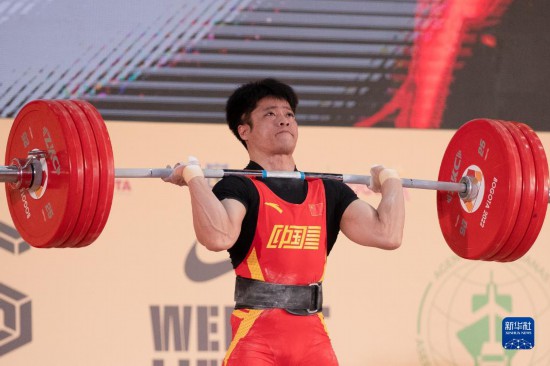 中國隊李發(fā)彬7日在波哥大舉行的2022舉重世錦賽男子61公斤級比賽中,拿下抓舉、挺舉和總成績?nèi)椆谲姡⒋蚱仆εe世界紀(jì)錄。