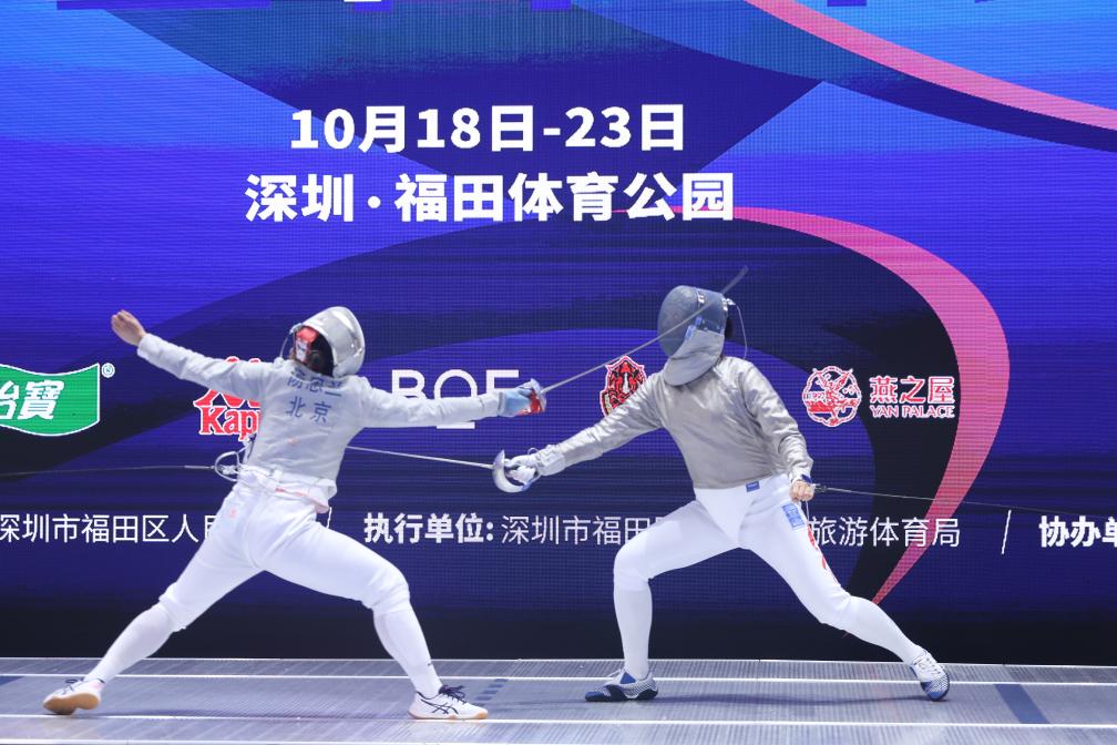 湯恩蘭(左)在女子佩劍個(gè)人決賽中對陣邵雅琦。圖片來自中國擊劍協(xié)會