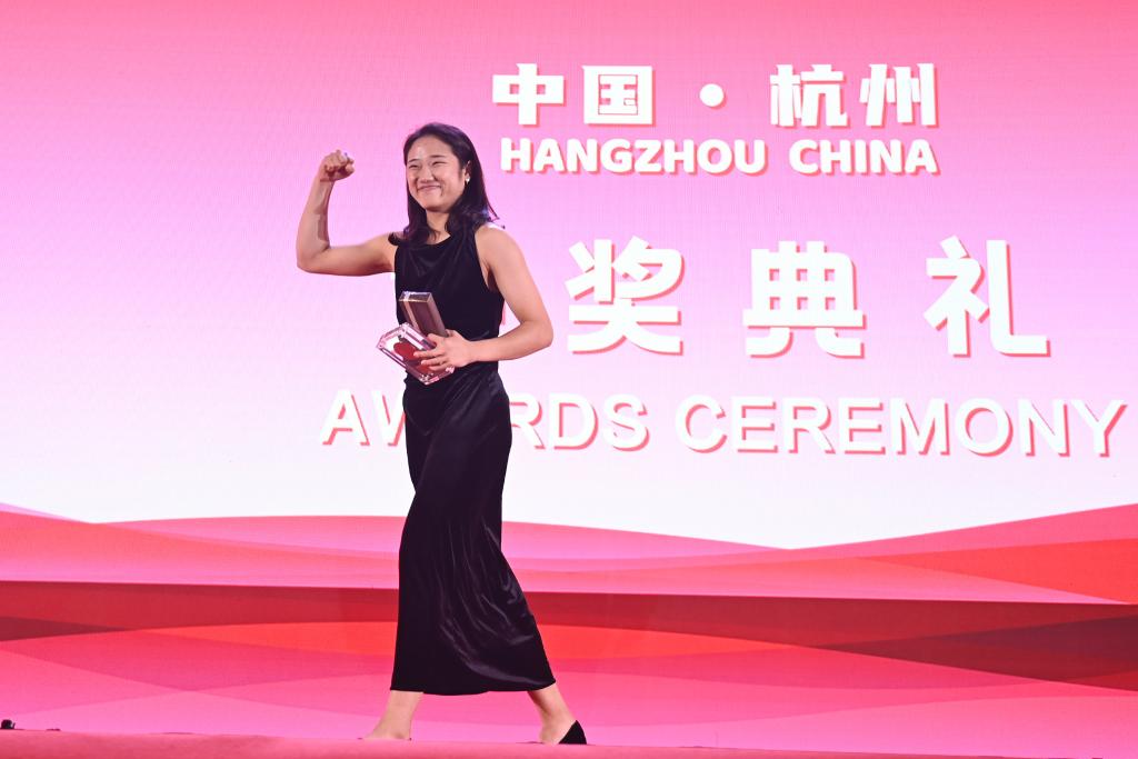 12月11日,獲得年度最佳女運(yùn)動(dòng)員的韓國(guó)選手安洗瑩在頒獎(jiǎng)儀式上。新華社記者 黃宗治 攝