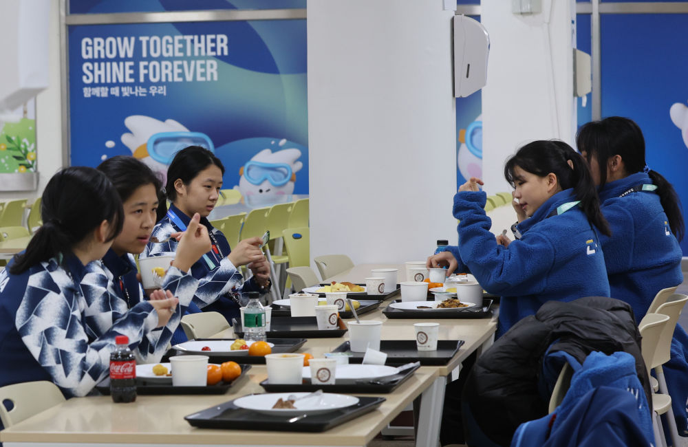 1月18日,中國(guó)運(yùn)動(dòng)員在冬青奧村內(nèi)就餐。新華社記者 姚琪琳 攝