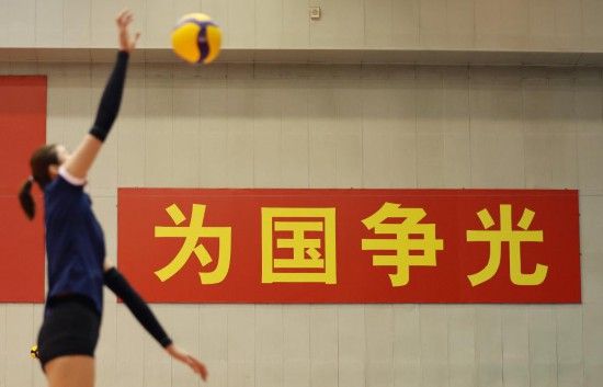 2月22日,中國(guó)女排球員在訓(xùn)練中。新華社記者賈浩成攝
