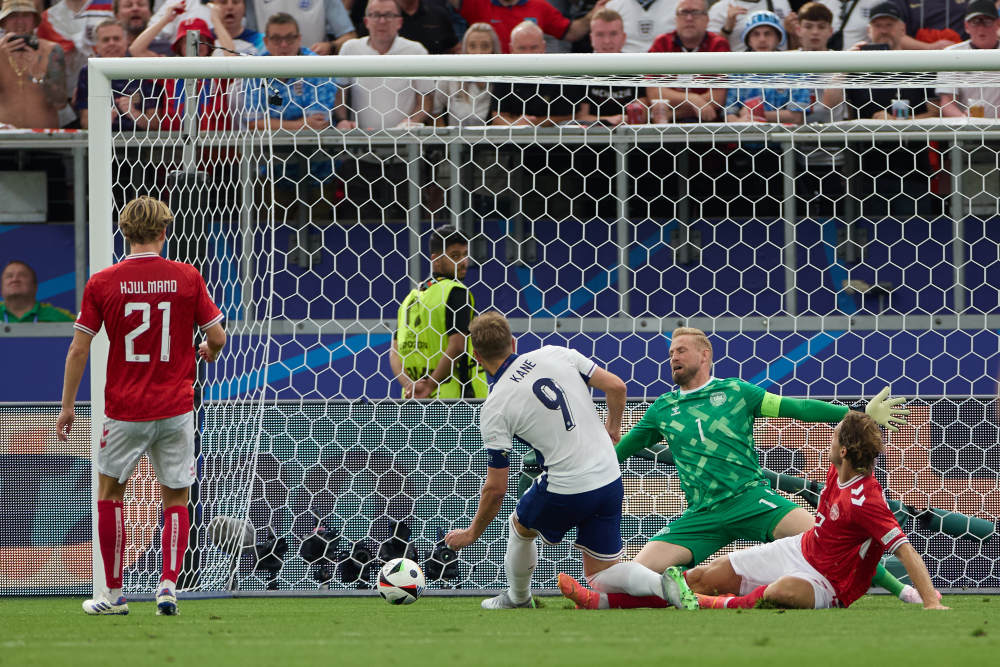 第18分鐘,英格蘭隊(duì)沃克下底后倒三角傳中,凱恩門前推射打破僵局。第34分鐘,丹麥隊(duì)中場(chǎng)摩頓·尤爾曼轟出一腳無(wú)解世界波,皮球如炮彈般擊中立柱內(nèi)側(cè)入網(wǎng),英格蘭隊(duì)守門員皮克福德鞭長(zhǎng)莫及。下半場(chǎng)雙方均破門乏術(shù),福登第56分鐘遠(yuǎn)射擊中立柱,是英格蘭隊(duì)下半場(chǎng)最有威脅的機(jī)會(huì)。英格蘭隊(duì)主教練索斯蓋特早早換下前場(chǎng)三叉戟,本賽季在切爾西發(fā)揮出色的小將帕爾默依舊沒(méi)能獲得出場(chǎng)機(jī)會(huì)。1:1的比分保持到終場(chǎng)。