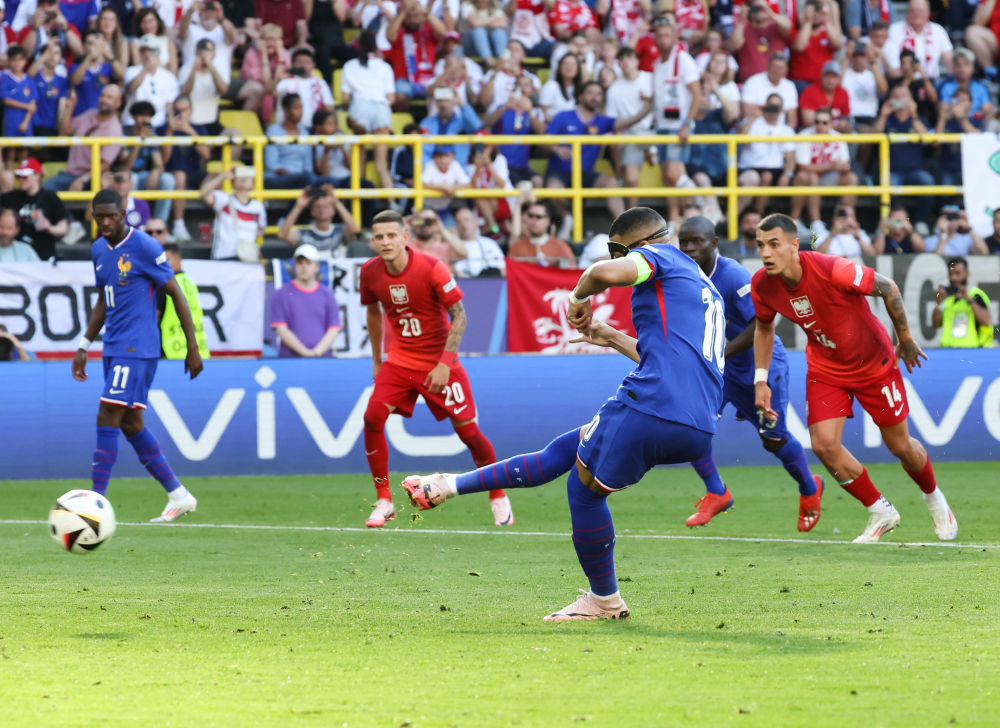 法國頭號球星姆巴佩本場復(fù)出成為全場焦點(diǎn),他在下半場通過點(diǎn)球建功,打入了個(gè)人在歐錦賽上的首粒進(jìn)球。比賽尾聲階段,波蘭隊(duì)同樣獲得一粒點(diǎn)球,萊萬多夫斯基主罰命中將比分定格為1:1。