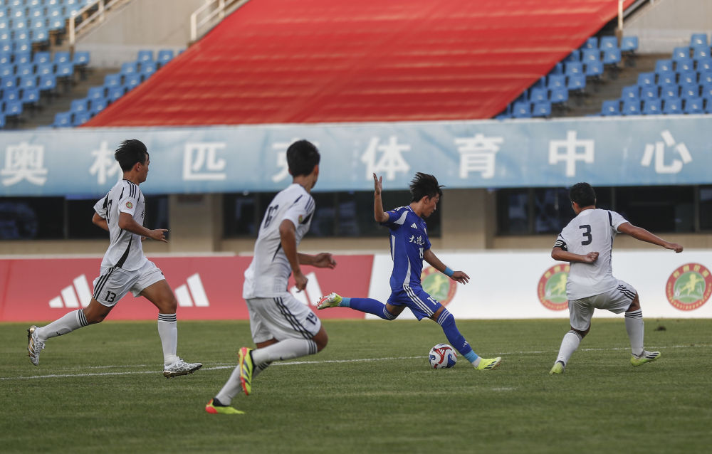2024年8月30日,大連市第八中學(xué)隊(duì)球員張禹(右二)打入第一粒進(jìn)球。當(dāng)日,2023-2024全國青少年校園足球聯(lián)賽高中男子組決賽在北京奧體中心體育場(chǎng)舉行,大連市第八中學(xué)隊(duì)2比0戰(zhàn)勝南昌市第二中學(xué)隊(duì),奪得冠軍。新華社記者 胡星宇 攝
