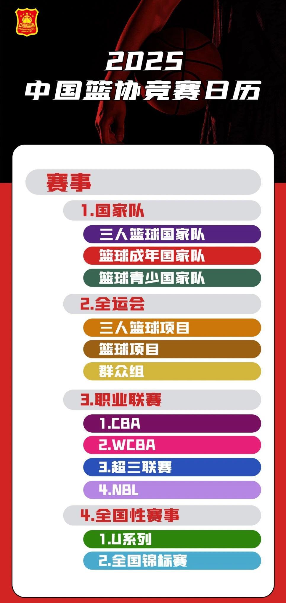 日前,中國籃球協(xié)會(huì)發(fā)布2025年的競(jìng)賽日歷,所有賽事按照編排賽歷時(shí)的優(yōu)先程度分為5個(gè)層級(jí),包括各級(jí)國際比賽、職業(yè)聯(lián)賽等。中國籃協(xié)相關(guān)人士表示,這次對(duì)外公布的只是前四個(gè)層級(jí)的已確定賽事。中國籃協(xié)和學(xué)體聯(lián)聯(lián)合主辦的一些教育系統(tǒng)的賽事屬于第五個(gè)層級(jí),待有關(guān)細(xì)節(jié)確定后也會(huì)公布。