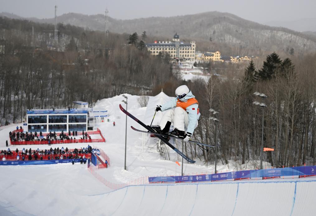 2月8日,李方慧在第九屆亞冬會自由式滑雪女子U型場地技巧決賽中獲得金牌。新華社記者 夏一方 攝