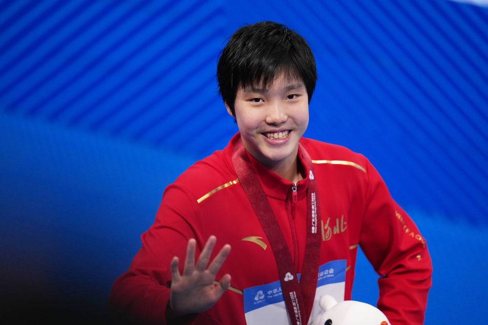 泳池里,年輕一代同樣耀眼。山東隊18歲新秀張展碩在男子1500米自由泳中稱雄,收獲本屆全運會個人第五金。13歲的河北選手于子迪在女子400米個人混合泳中折桂,以三金結(jié)束首次全運征程。