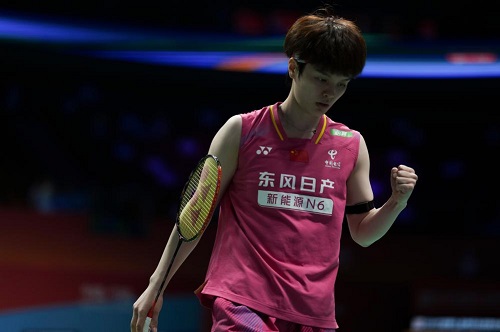 面對辛杜,二號種子王祉怡以21:18艱難拿下首局后,在第二局完全掌控局勢,以21:8鎖定八強門票。