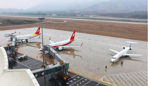 五臺山機(jī)場自2015年12月25日至今,開航7個月共開通了3條航線,可通達(dá)???、桂林、上海、銀川、重慶、天津6個城市,共保障航班764架次,公務(wù)機(jī)20架次。