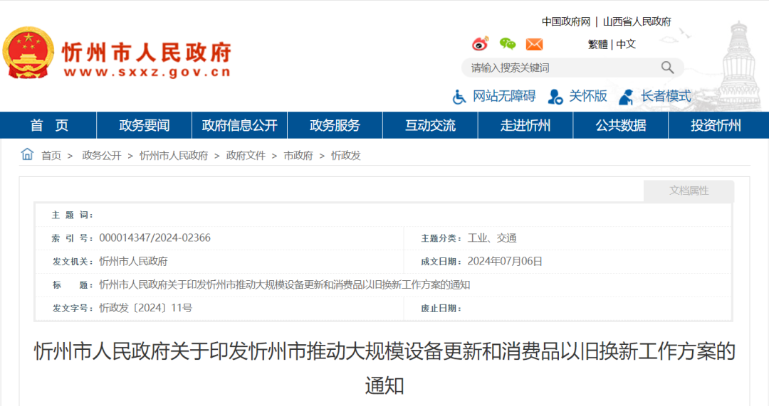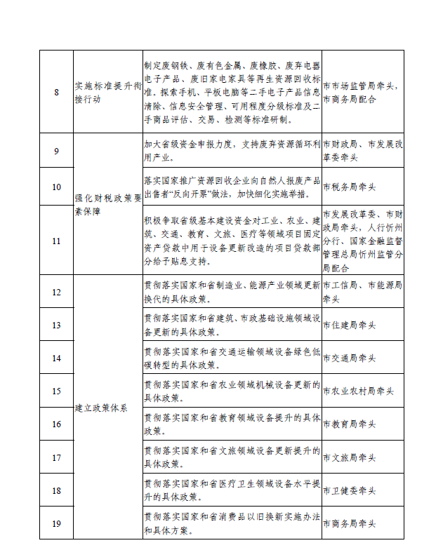 忻州市推動大規(guī)模設(shè)備更新和消費(fèi)品以舊換新工作方案