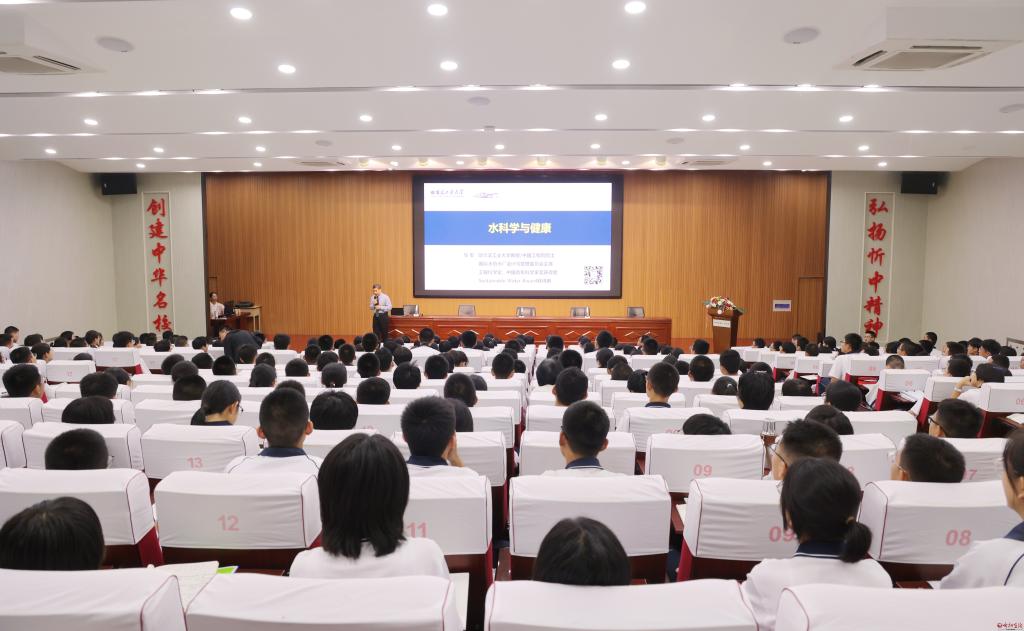 專題報告現(xiàn)場。范琛 攝 在忻州一中科技樓多功能報告廳,馬軍為師生們作了題為“水科學與健康”的專題報告,圍繞水中礦物質及微量元素對健康的影響、飲用水凈化技術、源頭減污降碳技術、智慧水務與智能水廠等方面,立足高中教育階段學情,為廣大師生闡述水科學的內涵與知識,并對哈工大生態(tài)文明相關學科的現(xiàn)狀與發(fā)展提出了深刻的見解。在場同學紛紛表示,馬軍院士淵博的學識和對專業(yè)發(fā)展的前景展望讓人受益匪淺,不僅開拓了大家探尋科學的視野與氣度,同時也領略了院士專家的家國情懷、學術風采與人格魅力,激發(fā)了大家積極投身科技強國實踐,努力成為可堪大用、能擔重任的棟梁之材。 報告會前,馬軍圍繞農業(yè)循環(huán)可持續(xù)發(fā)展,與市農業(yè)農村局有關負責人進行了深入交流,從戰(zhàn)略視角多維度分析“碳達峰”“碳中和”雙碳目標,科普農廢資源化能源化循環(huán)利用理念,指出農廢循環(huán)利用不僅可以降低秸稈運輸成本,同時能夠增加土壤有機質、減少農藥化肥使用、降低污染,有效防止土地退化和水土流失。馬軍表示,希望與我市在打造特色農業(yè)產(chǎn)業(yè)園、建設制備黃腐酸生物有機肥生產(chǎn)線等方面進行深度合作,通過合作研究、技術創(chuàng)新、宣傳推廣等多種方式推動實現(xiàn)雙碳目標,助力現(xiàn)代農業(yè)發(fā)展。