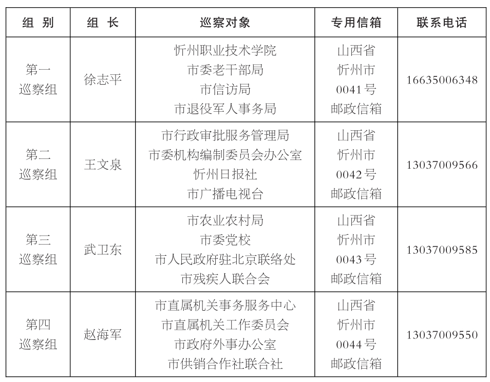 五屆忻州市委第七輪巡察進(jìn)駐情況一覽表