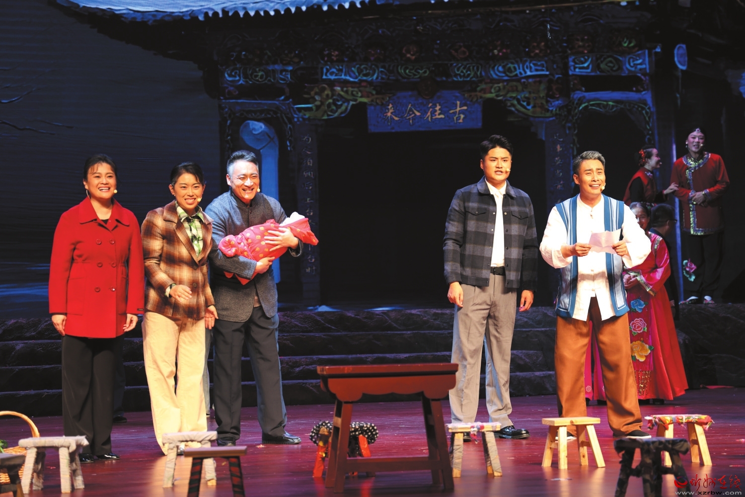 大幕開啟,濃郁的地域風情撲面而來。河曲民歌、二人臺和河曲河燈會——三項國家級非物質(zhì)文化遺產(chǎn)的藝術精華在舞臺上交相輝映,煥發(fā)出耀眼光芒。恢宏的舞臺布景與極具感染力的音樂,瞬間把觀眾帶入河曲民歌鼎盛的年代。隨著劇情跌宕,觀眾沉浸于河曲兒女守護文化遺產(chǎn)的動人故事,感受那份融入血脈的執(zhí)著精神。