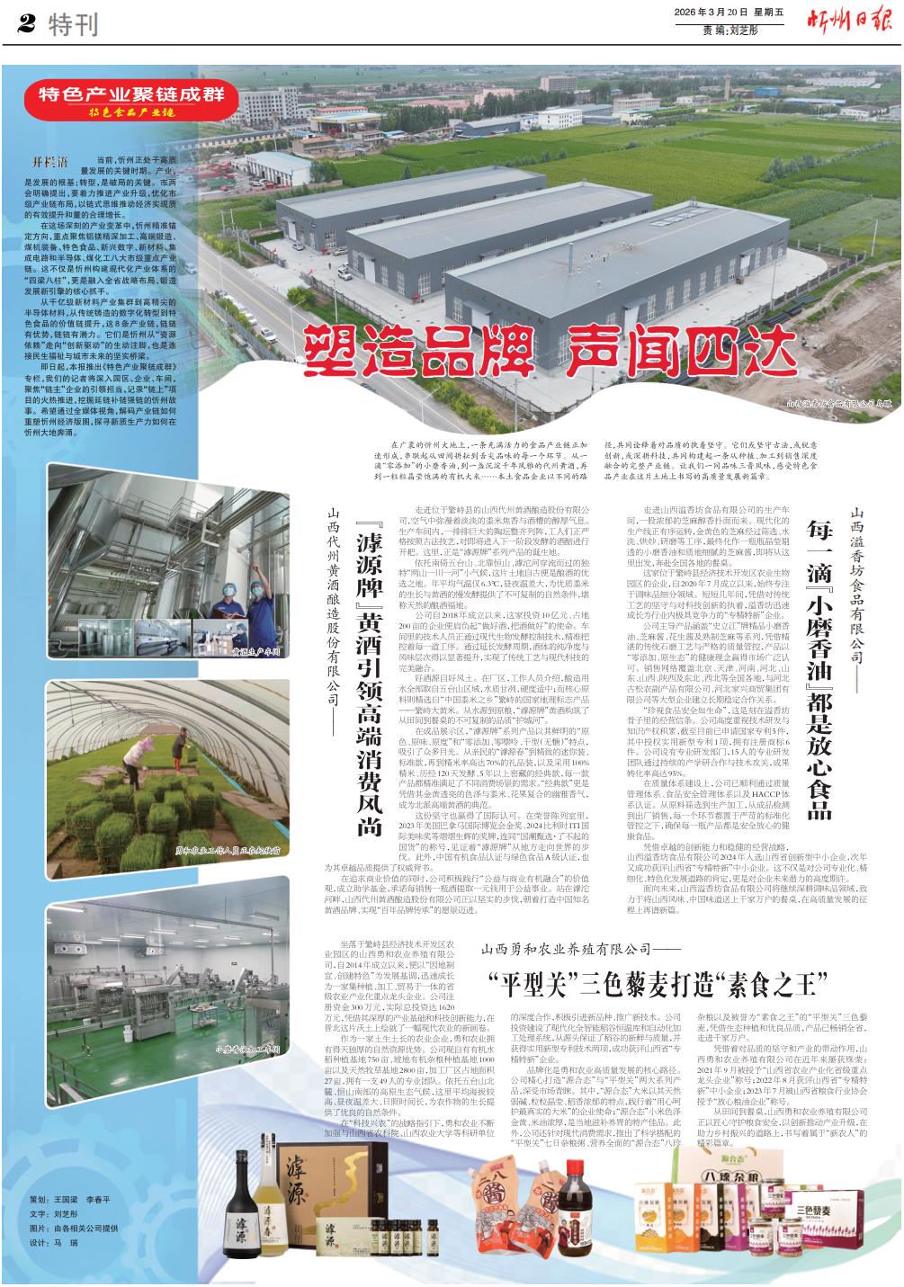在廣袤的忻州大地上,一條充滿活力的食品產(chǎn)業(yè)鏈正加速形成,串聯(lián)起從田間耕耘到舌尖品味的每一個環(huán)節(jié)。從一滴“零添加”的小磨香油,到一盞沉淀千年風(fēng)雅的代州黃酒,再到一粒粒晶瑩飽滿的有機(jī)大米……本土食品企業(yè)以不同的路徑,共同詮釋著對品質(zhì)的執(zhí)著堅守。它們或堅守古法,或銳意創(chuàng)新,或深耕科技,共同構(gòu)建起一條從種植、加工到銷售深度融合的完整產(chǎn)業(yè)鏈。讓我們一同品味三晉風(fēng)味,感受特色食品產(chǎn)業(yè)在這片土地上書寫的高質(zhì)量發(fā)展新篇章。