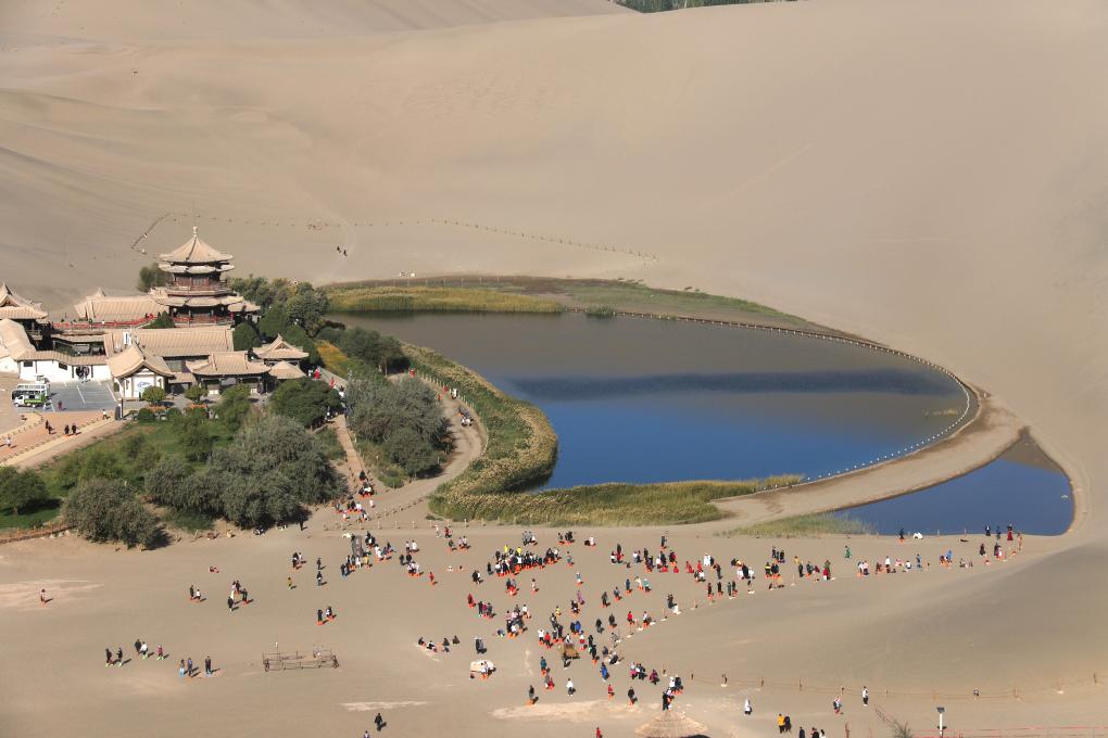 2024年10月3日,游客在甘肅省敦煌市鳴沙山月牙泉景區(qū)游覽。張曉亮 攝