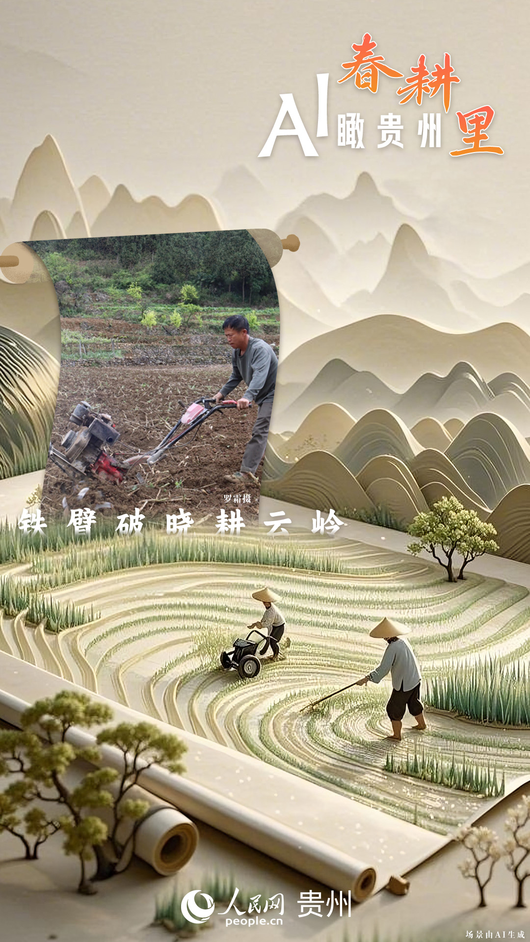 春回大地,萬(wàn)物復(fù)蘇,黔地山川間正上演著一場(chǎng)生機(jī)勃勃的春耕盛景。傳統(tǒng)農(nóng)耕與現(xiàn)代科技在這里交織,描繪出一幅幅充滿希望的畫(huà)卷。 春耕不僅是農(nóng)時(shí)的序曲,更是科技與土地對(duì)話的現(xiàn)場(chǎng)。在貴州這片喀斯特地貌與民族文化交織的土地上,春耕正經(jīng)歷一場(chǎng)靜默的變革:無(wú)人機(jī)掠過(guò)千年梯田,算法解析紅壤墑情,覆膜機(jī)織就“智能外衣”,而彎腰勞作的農(nóng)人,依然用繭手傳遞著古老農(nóng)耕文明的溫度。 本期跟隨AI一起描繪貴州春耕里的故事。
