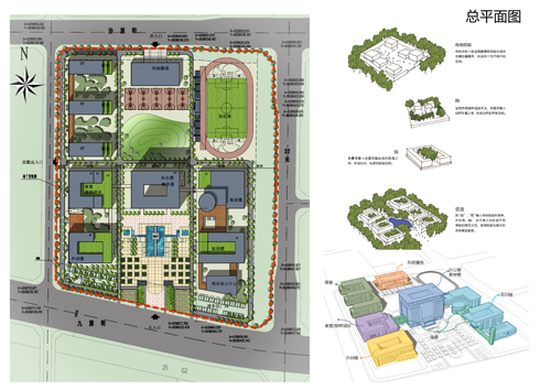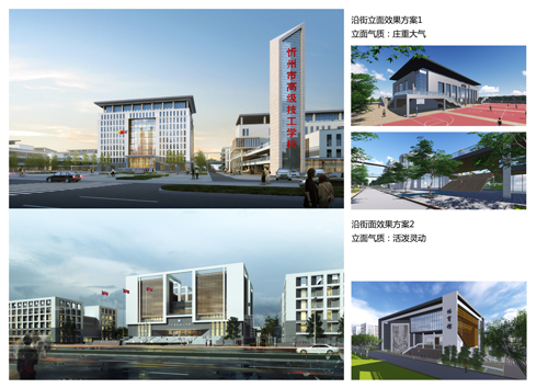 我們本著國匠精神-九宮格布局、山水格局-背山面水、四水歸堂的設計理念,團結上學、振興技校的精神,努力將本項目打造成為忻州市的新名片,圓技校學生一個大學夢。我們注重整體空間的舒適性、藝術性,不強調過分統(tǒng)一。設計中注重細節(jié)處理和學生們行為模式的考慮;將環(huán)境氣氛和設施布置的更具有靈活性、親和力,適應寬松、生活化的教學模式。