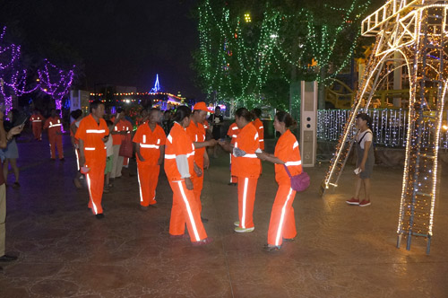 7月31日晚8點,炎熱漸漸退卻,一絲涼爽浸上心頭。忻州城區(qū)150名環(huán)衛(wèi)工人來到晉忻夢幻樂園,徜徉在“夢幻燈光節(jié)”燈展的長廊里、美景中。他們有的拍照留念,有的歡呼雀躍,有的步履悠閑,把平日的辛苦繁雜全放置腦后,盡情享受屬于他們的放松一刻。