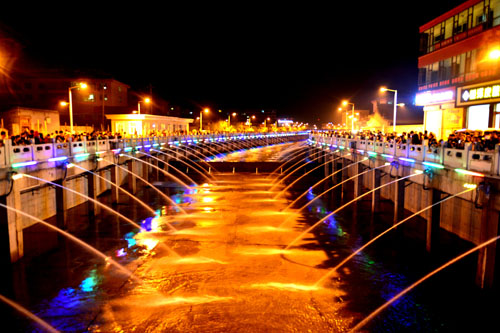 10月1日,國慶節(jié),代縣縣城關溝河景觀工程正式竣工蓄水。河道中,兩道鋼閘壩內,清清的河水碧波蕩漾,河道兩岸是兩條6米寬的景觀大道。道路內側,路燈成行,綠樹成蔭,風光如畫。伴隨著優(yōu)美的樂曲,河道兩側的音樂噴泉噴珠吐玉,不斷變化著造型,在金色的陽光下不時閃現出道道彩虹。到了夜間,音樂噴泉在明亮的燈光映襯下,更是五彩繽紛,赤橙黃綠青藍紫,猶如彩練當空舞。成為歷史文化名城一道亮麗的風景。