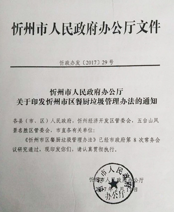 第一條 為加強餐廚垃圾管理,維護市區(qū)市容環(huán)境衛(wèi)生,促進餐廚垃圾無害化處理和資源化利用,保障市民身體健康,根據(jù)《中華人民共和國固體廢物污染環(huán)境防治法》、國務(wù)院《城市市容和環(huán)境衛(wèi)生管理條例》、建設(shè)部《城市生活垃圾管理辦法》(建設(shè)部令2007年第157號)、商務(wù)部《餐飲業(yè)經(jīng)營管理辦法(試行)》(商務(wù)部令2014年第4號)、《忻州市人民政府辦公廳關(guān)于印發(fā)忻州市區(qū)垃圾管理辦法的通知》(忻政辦發(fā)〔2014〕1號)和《忻州市人民政府辦公廳關(guān)于印發(fā)忻州市區(qū)生活垃圾分類管理實施辦法的通知》(忻政辦發(fā)〔2014〕134號)等法規(guī)和規(guī)定,結(jié)合市區(qū)實際,制定本辦法。