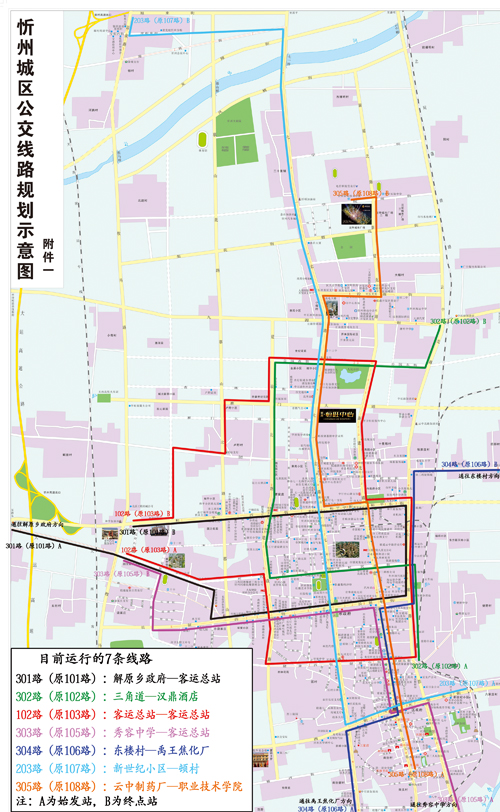 途經(jīng)站點(diǎn):火車站→云中路小學(xué)→和平廣場(chǎng)→市人民銀行→忻州師院→建設(shè)路口→忻州市供水公司→客運(yùn)中心→解原村口→大西高鐵站→小奇村口→北趙村口→河拱村→頓村→旭來(lái)街口,共15個(gè)站點(diǎn);