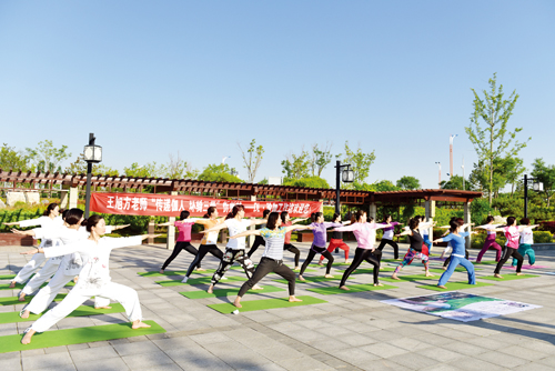 5月31日,“傳愛伽人·環(huán)騎三晉”山西省首屆瑜伽達人賽助力騎行者王旭方,騎單車抵達忻州市DJ禪意瑜伽會館。王旭方與瑜伽愛好者們進行了面對面的技藝交流。6月1日早晨,DJ禪意瑜伽會館又在云中河公園舉辦了一次別開生面的戶外瑜伽分享課,場景吸引了眾多在公園晨練的群眾駐足觀看。