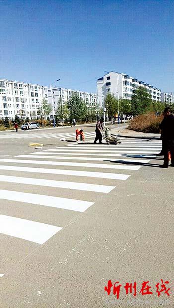 通過細(xì)致排查,交警大隊(duì)在廣惠園十字路口安裝紅綠燈一處,并在廣惠園與文淵路十字路口、通惠路與文淵路十字路口、通惠路與向陽街十字路口三處畫上了斑馬線,規(guī)范了城區(qū)通行秩序,為進(jìn)一步保障道路安全打下了堅(jiān)實(shí)的基礎(chǔ)。圖為工作人員正在道路上噴畫斑馬線張志遠(yuǎn)攝