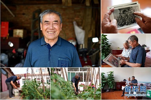 崔國平,男,1949年出生,山西省長治市武鄉(xiāng)縣監(jiān)漳村人。崔國平曾任監(jiān)漳村村支書,在職期間,帶領(lǐng)村民植樹造林,還修建了小學(xué)、中學(xué),建起了橋梁及舞臺(tái)。崔國平說,村民們的生活比以前好太多了,原來住的都是土房,現(xiàn)在都是嶄新的磚瓦房。 左上:崔國平肖像;右上:崔國平拿著自己年輕時(shí)的照片;右中:崔國平(右)和妻子張翠英在看家人的合影;右下:崔國平(右)和妻子張翠英在翻看老照片;下中:崔國平在院子里忙碌;下左:崔國平在給自己種的菜澆水(拼版照片,6月11日攝)。 地處晉東南的山西省長治市,位于由太行山、太岳山環(huán)繞而成的上黨盆地中。在群山中、崖壁上,許多村莊自然條件惡劣,基礎(chǔ)設(shè)施落后,脫貧致富是大山深處人們的迫切心愿。 近年來,一場場脫貧攻堅(jiān)戰(zhàn),在一個(gè)個(gè)深山村打響。政府全力探索脫貧路徑的同時(shí),山區(qū)百姓因地制宜,靠自己的雙手和智慧走上致富路,交出了一份扎實(shí)的脫貧答卷。 記者在太行山、太岳山一路尋訪,記錄下多位70歲老人的生活。這些共和國的同齡人,親歷了山鄉(xiāng)的巨變,見證著長治山區(qū)脫貧攻堅(jiān)偉大工程的一步步推進(jìn)。 新華社記者 詹彥 攝