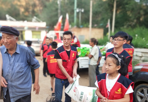 在發(fā)放現(xiàn)場(chǎng),受災(zāi)群眾感受到了志愿者的關(guān)愛,看在眼里,暖在心里,整個(gè)村里呈現(xiàn)出一片溫馨快樂的氛圍。