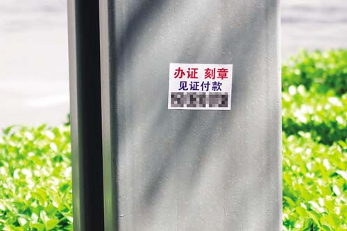 情況二:經(jīng)過創(chuàng)衛(wèi)整治,在清理了小廣告之后被粉刷一新的一些宣傳欄金屬框架上,赫然再現(xiàn)“辦證、刻章、見證付款”等垃圾小廣告,大煞風(fēng)景,影響市容,令人氣憤。